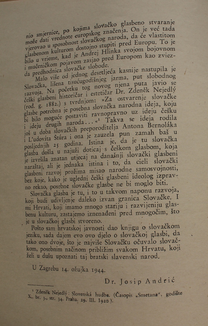 Josip Andrić: Slovačka glasbaHrvatsko-slovačko družtvo, Zagreb 1944.Priredio Darko Žubrinić