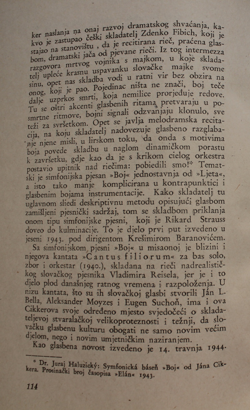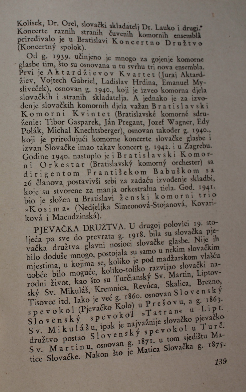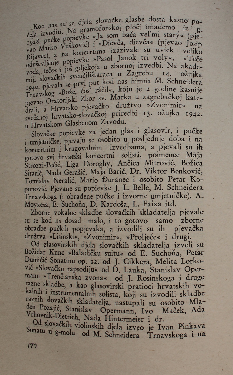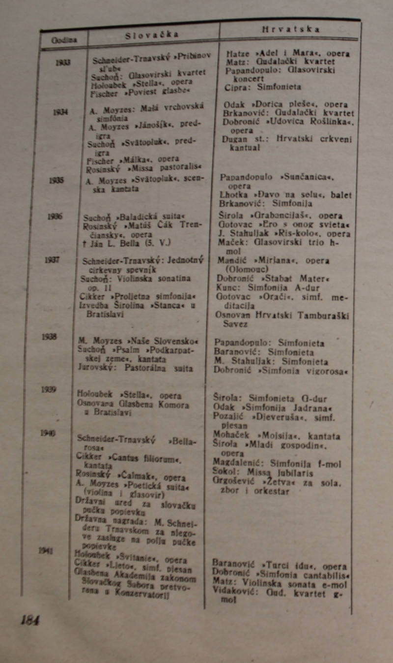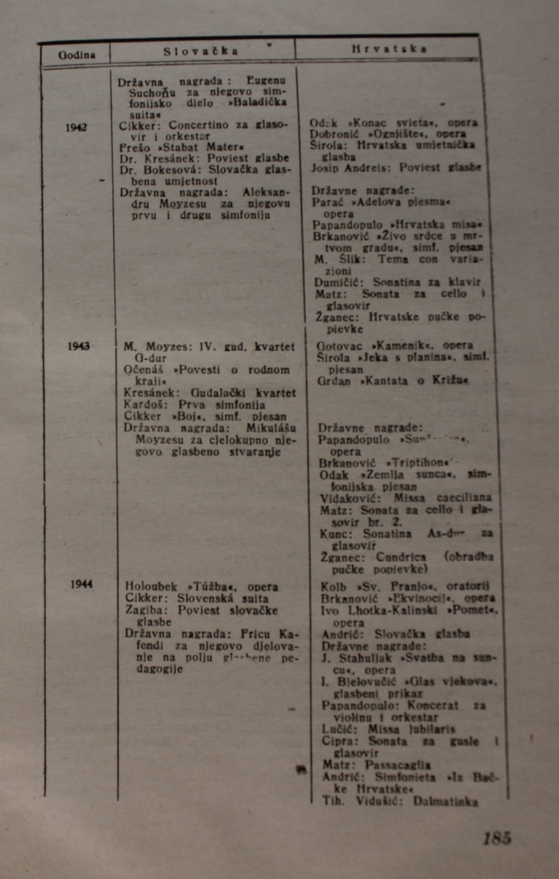 povijest Slovačke glazbe. Ova je knjiga spomenik hrvatske i slovačke kulture, dokaz da su vrijedna djela nastajala i u najtežim okolnostima.