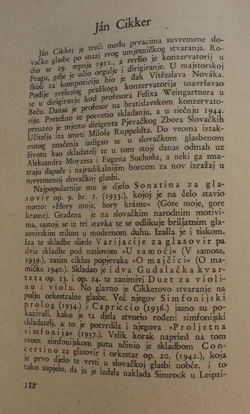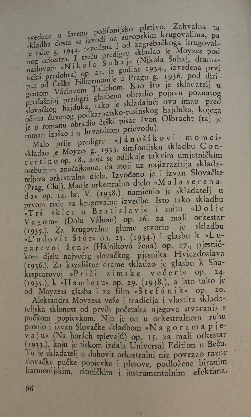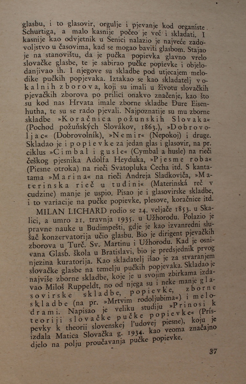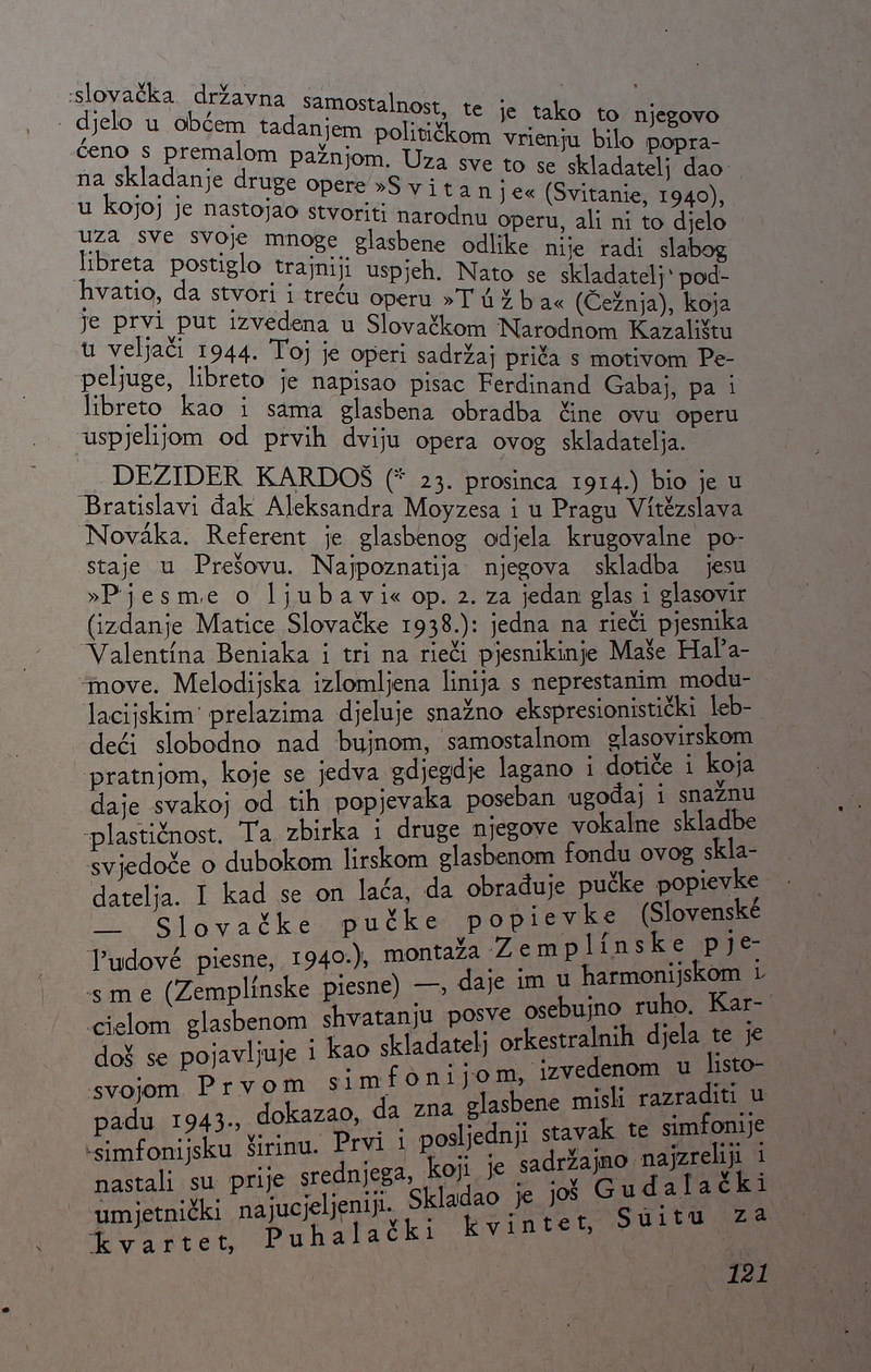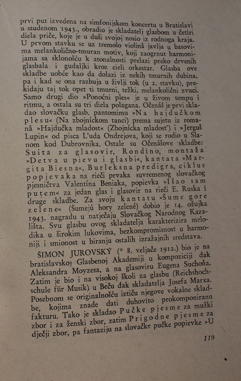 povijest Slovačke glazbe. Ova je knjiga spomenik hrvatske i slovačke kulture, dokaz da su vrijedna djela nastajala i u najtežim okolnostima.