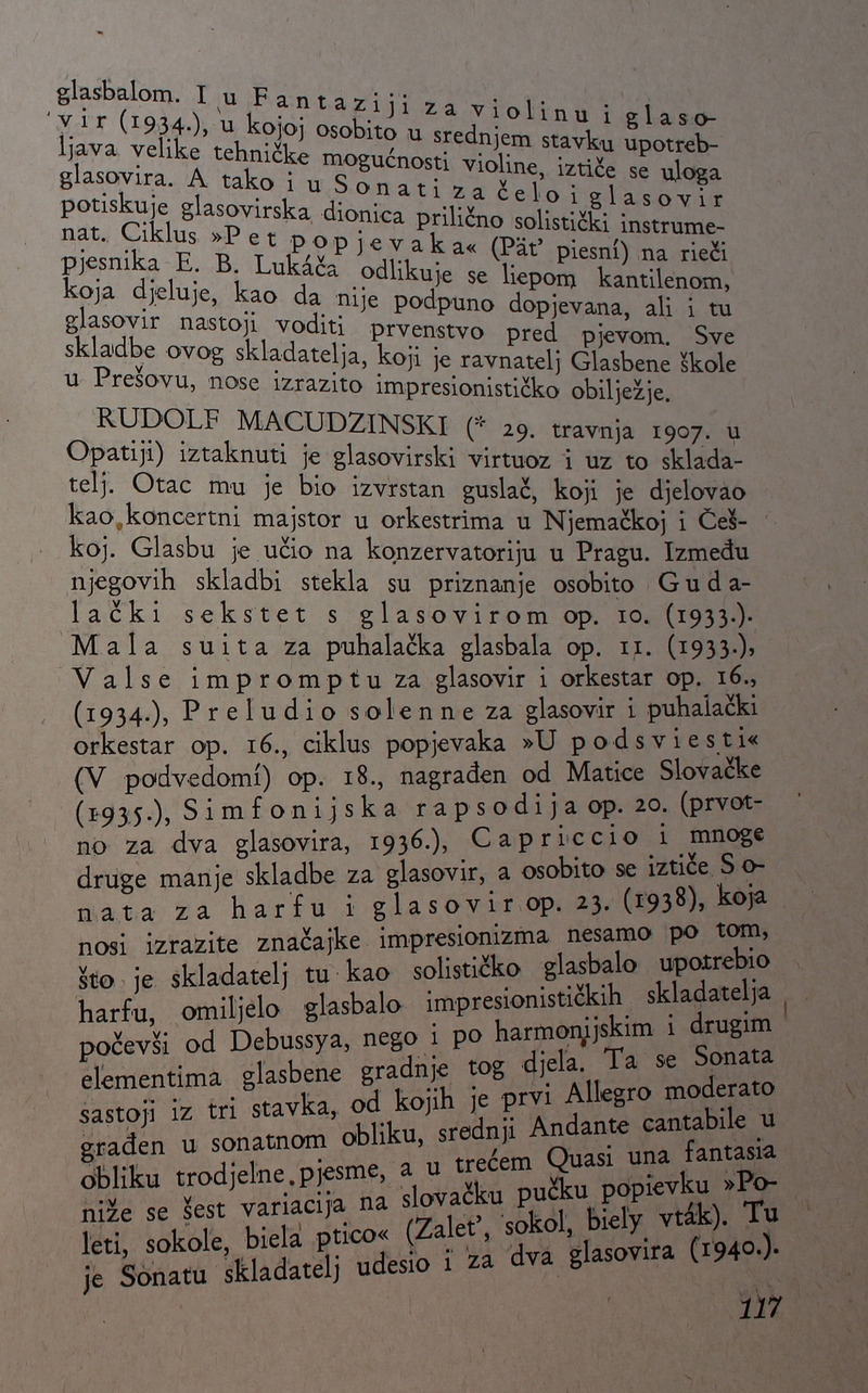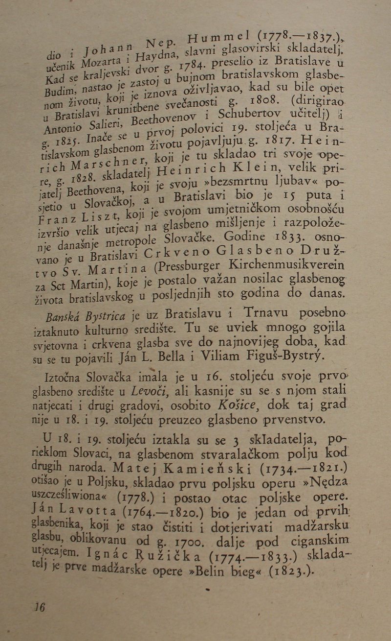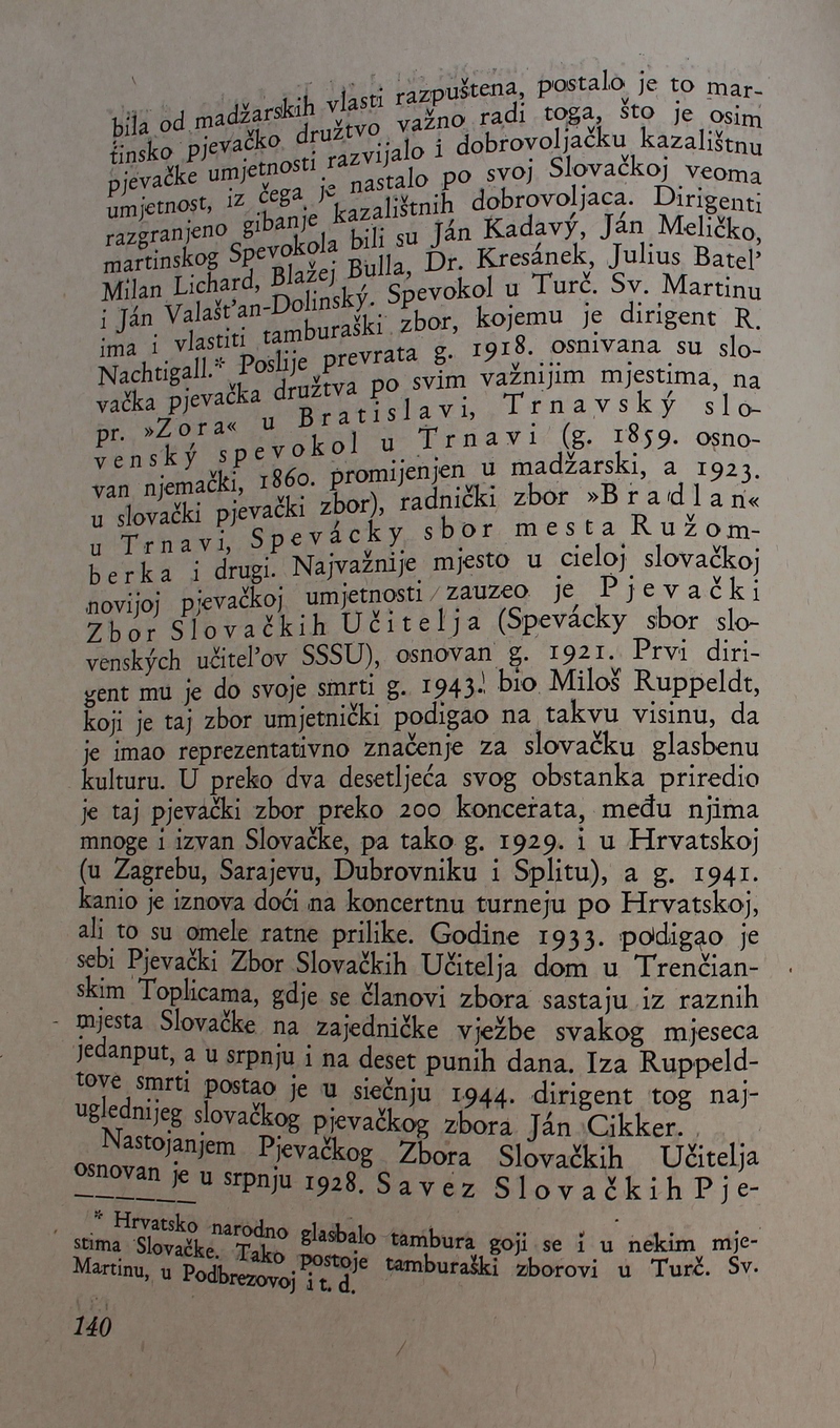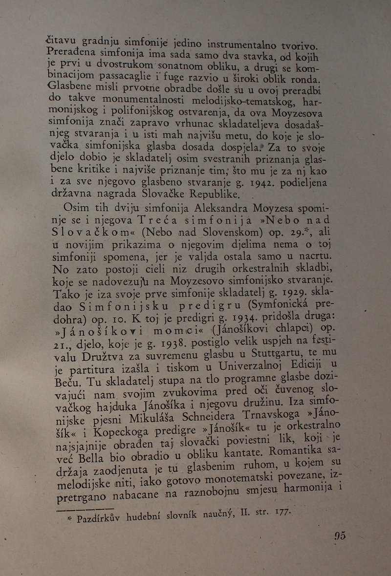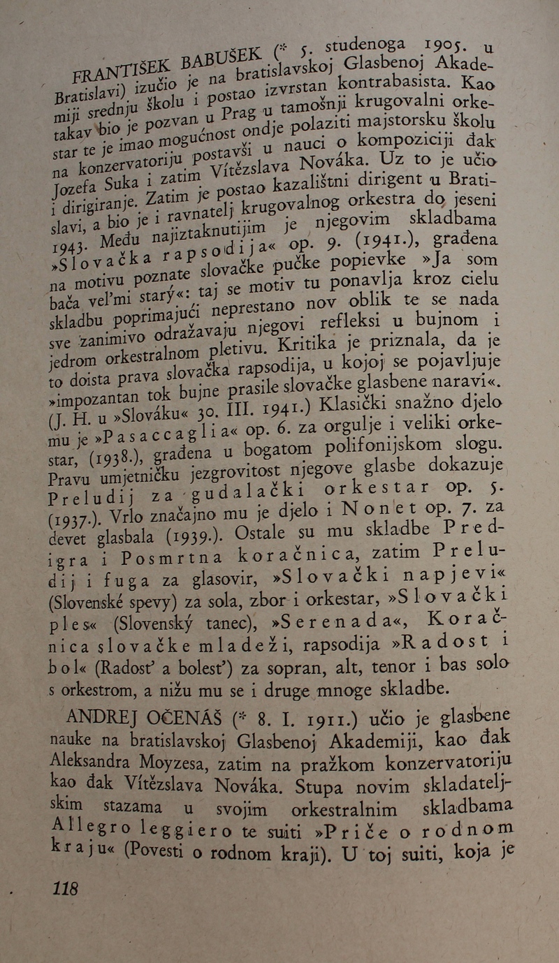 povijest Slovačke glazbe. Ova je knjiga spomenik hrvatske i slovačke kulture, dokaz da su vrijedna djela nastajala i u najtežim okolnostima.