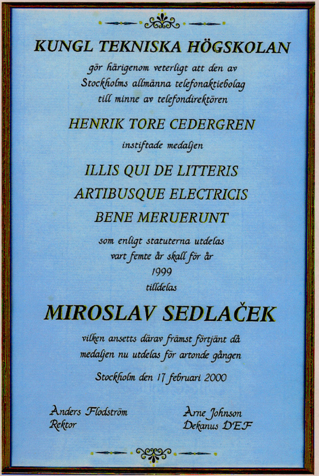 Miroslav Sedlacek CURRICULUM VITAE Born: 1925, May 31 in Karlovac, Croatia Died: 2017, January 13 in Odra, Croatia High school certificate in Karlovac in June 1943. Master of Engineering degree in electronics at the Technical Faculty of the University in Zagreb in December 1952. Ph.D. in Tecnical Physics at the Electrotechnical Faculty of the University in Zagreb in May 1961. (Examination in Classical electrodynamics, Electron optics and Theory of relativity. Thesis: Orbit stability in microtron) After receiving the master of engineering degree research assistant at the Ruder Boskovic Institute in Zagreb, Dept. of electronics. Work on electronic components for nuclear physics. In February 1954 went to Sweden with a scholarship, to work on the construction of a 1.2 GeV electron synchrotron at the Dept. of electronics, Royal Institute of Technology in Stockholm. Remained in Sweden until May 1958. Started with the work on counter telescope for measurements of cosmic rays, later on research and construction of a circular microtron, to be used as an injector for the 1,2 GeV electron synchrotron built at the Department for the University in Lund. Returned to Zagreb in 1958. Research assistant and senior reasercher at the Ruder Boskovic Institute until September 1965. Theoretical work on the orbit stability in the microtrons, research and development of halogen GM-counters and project leader during the construction of a high resolution NMR spectrometer. Since October 1965 again at the Dept. of electronics, Royal Institute of Technology in Stockholm, later renamed to Unit of accelerator technology. Research on and construction of a race-track microtron, especially theoretical work and computer simulation, design, construction and measurements on magnets and linear accelerators. Computer simulation and construction of high power CW and pulsed klystrons. Design and construction of an electron cooler for the CELSIUS ring in Uppsala. Professor in Accelerator technology since February 1986. Retired in June 1991. Teacher of a graduate physics course in physics and of postgraduate courses in electron optics, accelerator technology and microwaves at the Electrotechnical Faculty of the University in Zagreb between 1958 and 1965. In Sweden teacher of graduate and postgraduate courses in Electron physics between 1974 and 1991 and in Technical applications of electron physics since 1981. ![]() Miroslav Sedlaček: Electron Physics of Vacuum and Gaseous Devices, Wiley-VCH, 1996 (1st edition, 538 pp) |