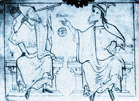 SLIKA HERMANA DALMATINA I EUKLIDA 13.st. reprodukcija crtea iz djela: Mattew of Paris Chronica maiora *
