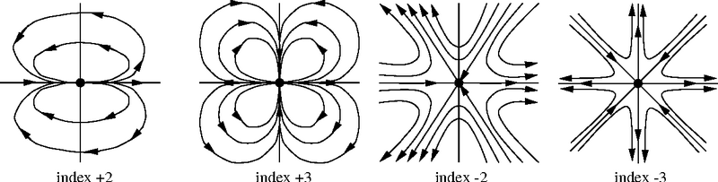 Prema tome, ako definiramo \(u(x_1,x_2)\) kao realni dio od \(z^n\), a \(v(x,y)\) kao imaginarni dio od \(z^n\), onda će vektorsko polje \((x_1,x_2)\mapsto(u(x_1,x_2), v(x_1,x_2))\) imati analogno svojstvo, tj. bit će indeksa \(n\) u odnosu na ishodište.