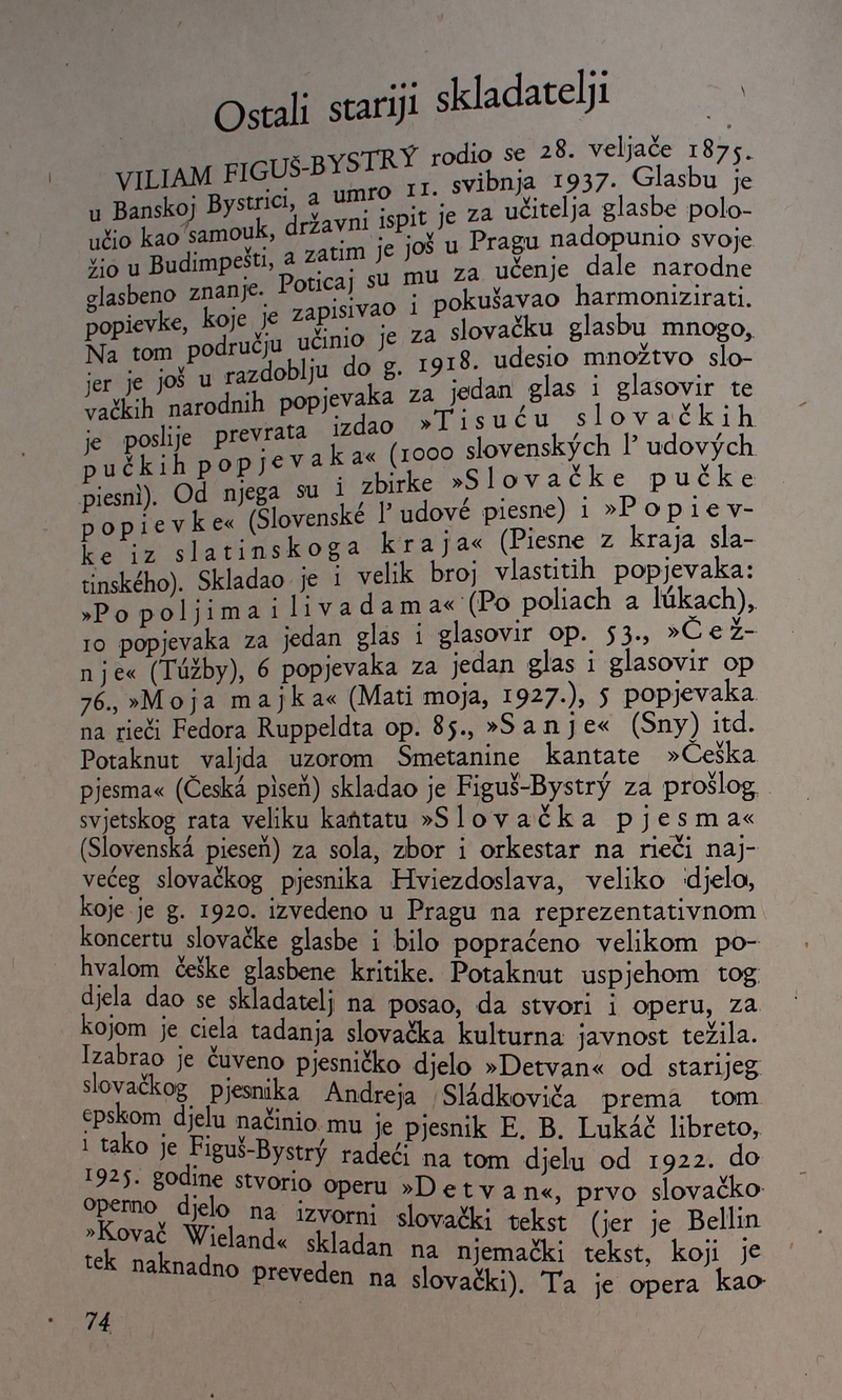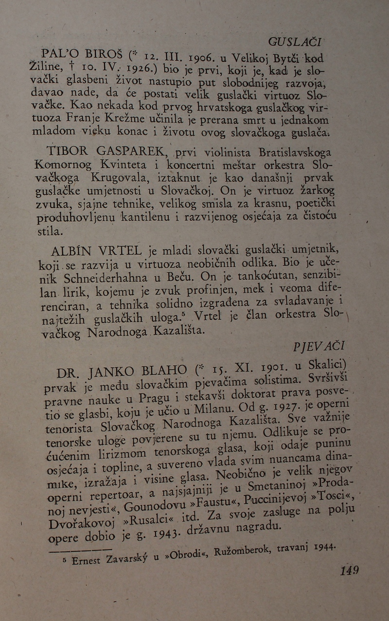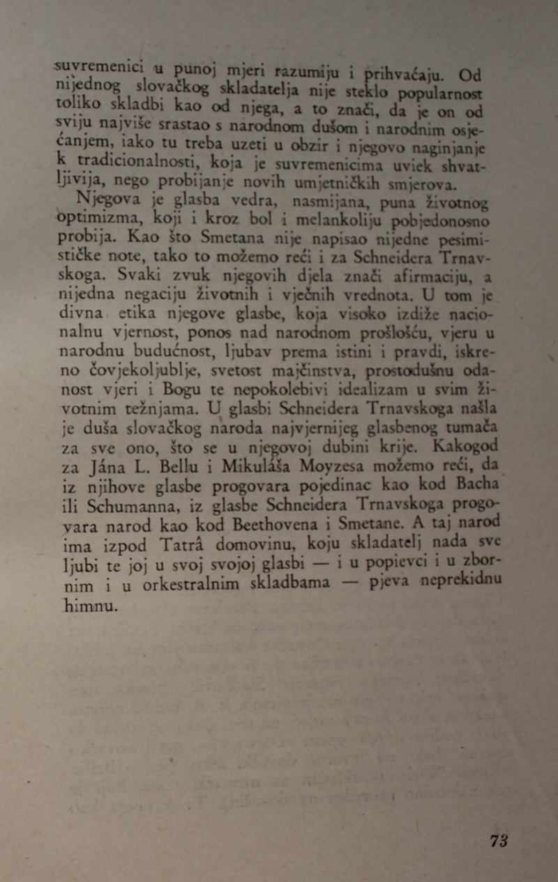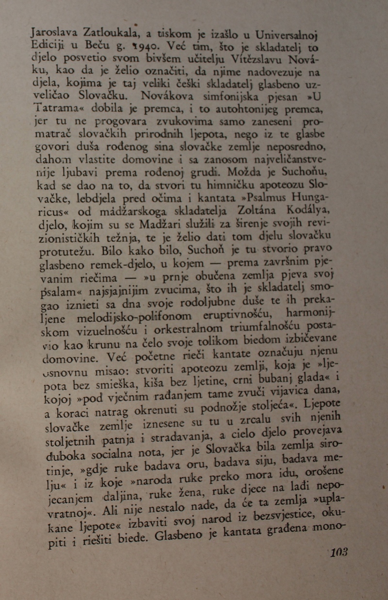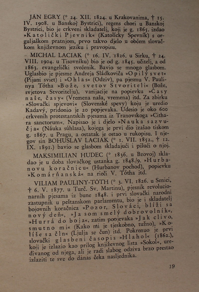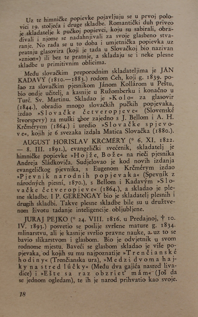 povijest Slovačke glazbe. Ova je knjiga spomenik hrvatske i slovačke kulture, dokaz da su vrijedna djela nastajala i u najtežim okolnostima.