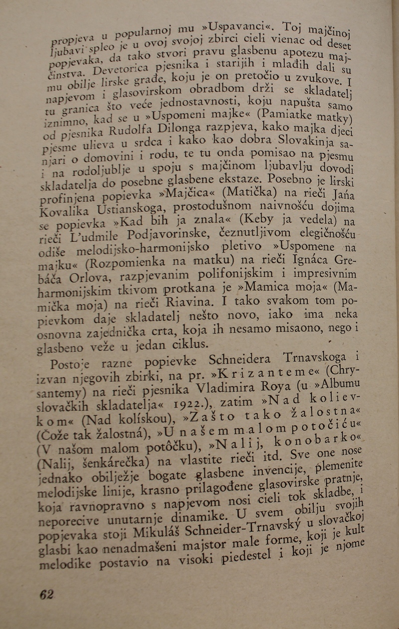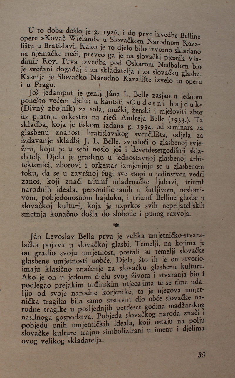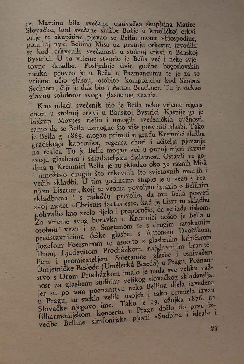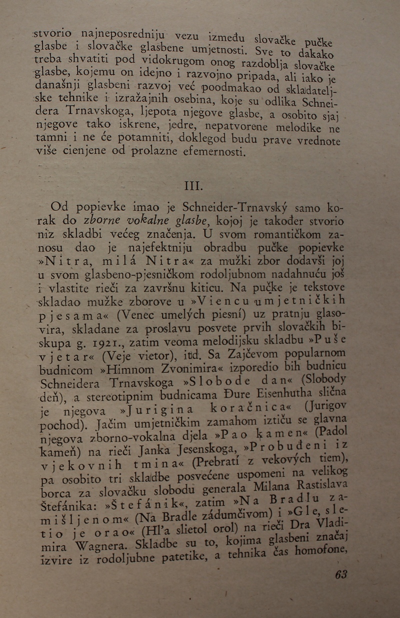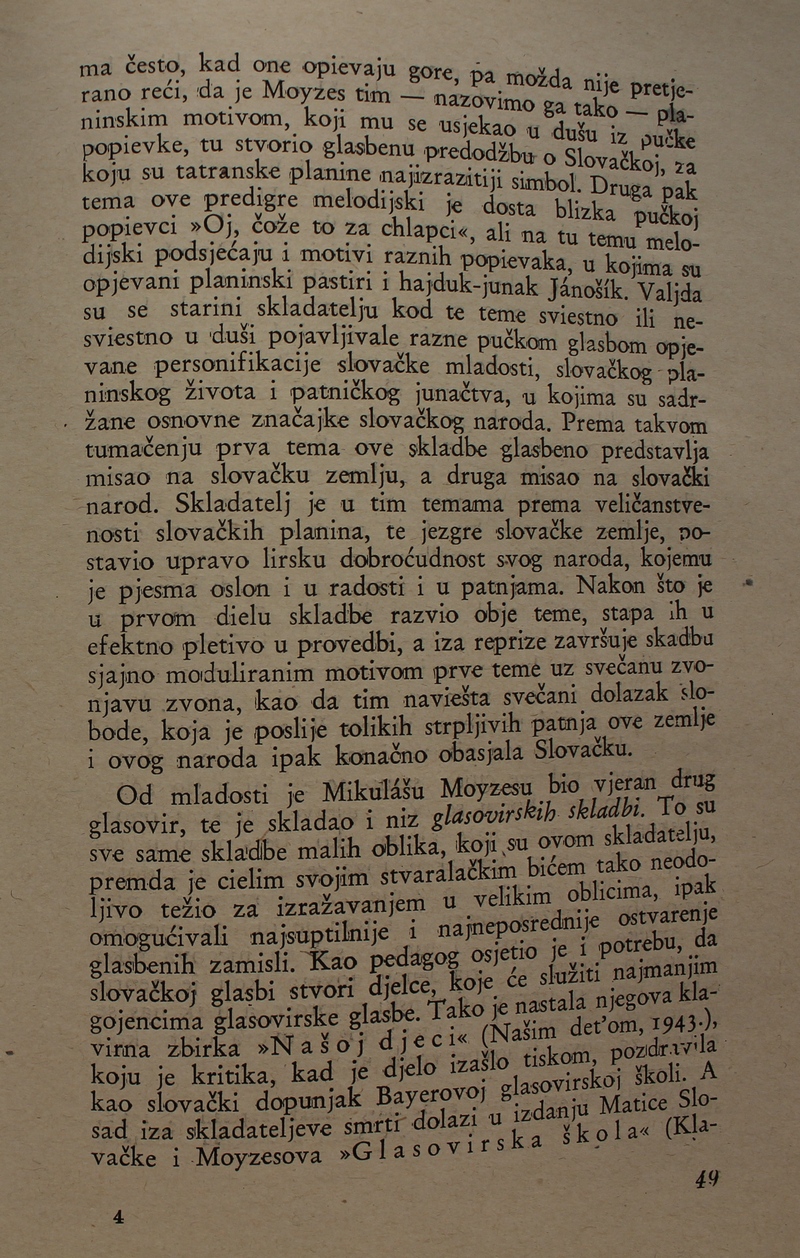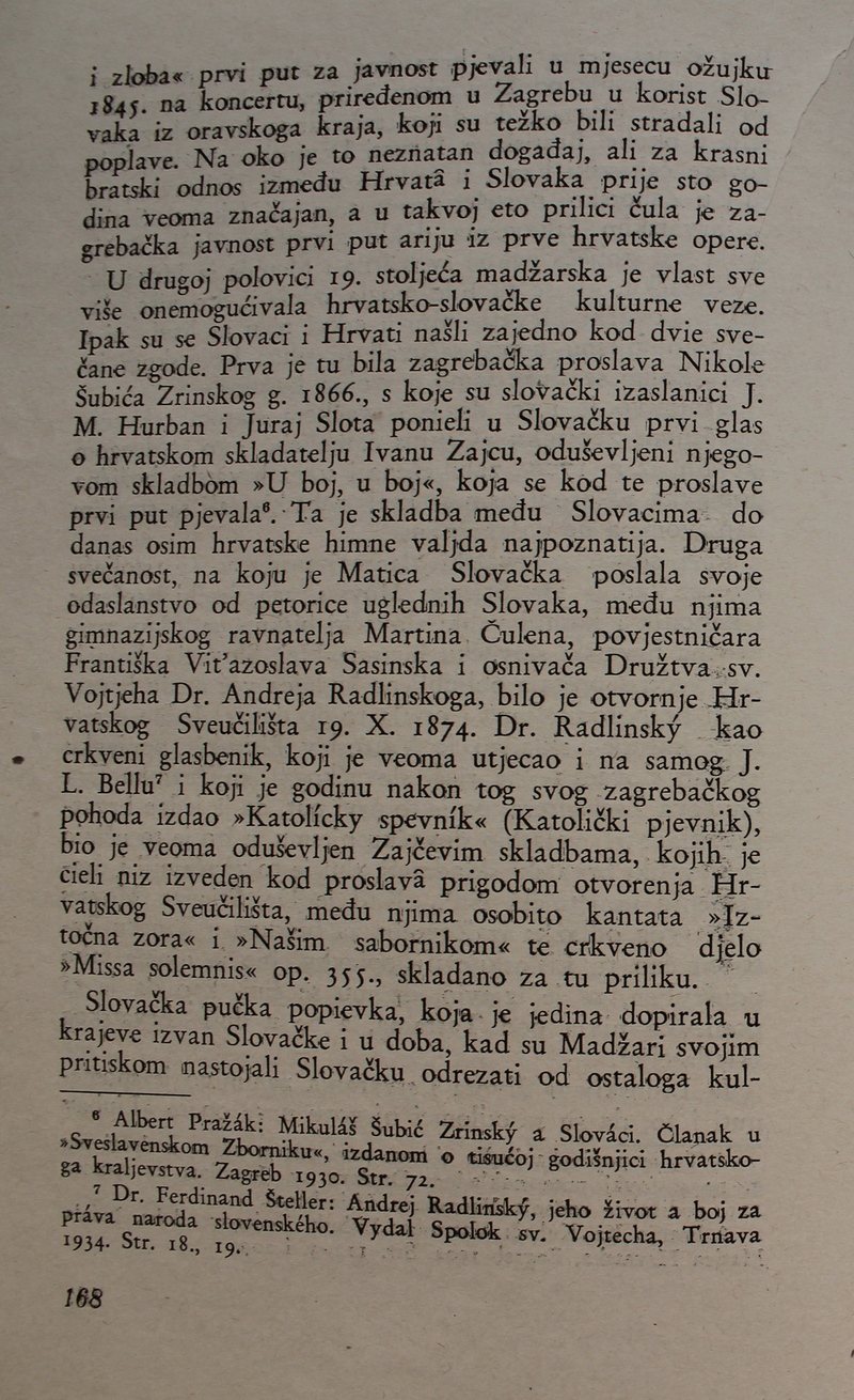 povijest Slovačke glazbe. Ova je knjiga spomenik hrvatske i slovačke kulture, dokaz da su vrijedna djela nastajala i u najtežim okolnostima.