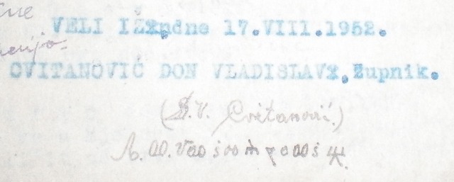 Vaš odani Cvitanović don Vlade Veli Iž, 24. I. 1949. P.S. Za oduzete glagoljske matice sam dobio primku. Zahvaljujem mons. dr. Pavlu Keri na fotografiji ovog pisma don Vladislava Cvitanovića. Don Vlade Cvitanović učio kao dijete za vrijeme ljetnih praznika kod svog strica, takodjer glagoljaša - don Blaža Cvitanovića. Don Blaž Cvitanović (Veli, Iž 1844.- Veli Iž, 1932.) poznat je po svojoj zbirci 787 vrsta školjaka koja se nalazi u Prirodoslovnom muzeju u Splitu (manji dio je u Institutu za oceanografiju). Dne 11. svibnja 2011. mons. dr. Pavao Kero održao je predavanje na redovitoj mjesečnoj tribini Društva prijatelja glagoljice u Zagrebu pod naslovom: Vladislav Cvitanović, svećenik i glagoljaš, život i djelo. Poslušajte to predavanje: [MP3]. 1. Don Blaž CVITANOVIĆ