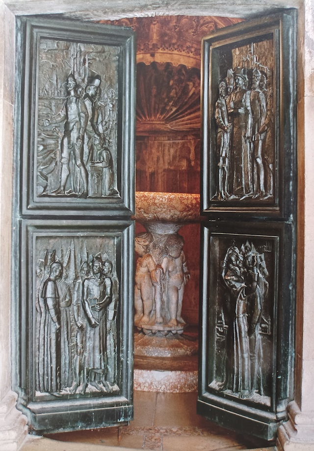 An important monograph describing Diocletian's Palace in Split is "Ruins of the Palace of the Emperor Diocletian at Spalatro in Dalmatia" written by Robert Adam in 1764, with his main associate Ch.L. Clerisseau. The author, an outstanding Scottish architect, mentions the beauty of Split and its favorable position and climate, stating that ``in the whole of the wide Roman Empire, not a single region could offer Diocletian a more marvelous place to withdraw to for a life of peace''. He designed several buildings in the style of Diocletian's palace (Syon House in Middlesex, Kedleston in Derbyshire, Adelphy Palace in London). Influences of his book can be seen even in St. Petersburg in Russia and in Virginia in the USA. The octagonal Mausoleum of the Roman Emperor Diocletian was transformed into the Christian church of St Dominius (Dujam) already in the 7th century, representing very probably the oldest cathedral in the world. According to Danish scientist Ejnar Dyggve, St Dominius (Dujam), the earliest known bishop of Salona (4th century), originated from Syria or Mesopotamia. Local Split tradition also confirms this. It is little known that the founder of the Republic of San Marino is St. Marinus, stone-carver born on the beautiful island of Rab in the 3rd century. Being a Christian, he had to escape to Rimini with his boat due to Roman persecutions of Christians during Diocletian's time. San Marino and the Rab are fraternal towns. Every year a joint festival is held alternately in Rab and San Marino. Another important archeological site is Bribirska glavica near the town of Skradin, where Croatian dignitaries Subic-Bribirski (later known as Subic-Zrinski) had their seat. The place is near the town of Skradin. First archeological excavations were undertaken by fra Lujo Marun, and then Stjepan Gunjaca. Settled already by Illyrians, during early Roman times it was called Varvaria, and had the status of municipium. In 14th century it was important fortress during the reign of Pavao Subic, Croatian Ban (governor) and ruler of Bosnia. In the period of 1991-1995 Greater Serbian aggression, this outstanding place has been used for bombing and shelling of Croatian towns and villages, and left completely devastated. It was liberated during the Storm operation in 1995. Croatian translation: Ovaj izvor naime prima slabe, da ih učini prosvijetljenima. Ovdje se peru od svojih zločina sto su ih primili od svog prvog roditelja, da postanu kršćani spasonosno ispovijedajući vječno Trojstvo. Ovo djelo pobožno učini svećenik Ivan u vrijeme kneza Višeslava, i to u čast sv. Ivana Krstitelja, da zagovara njega i njegova štićenika. Lit.